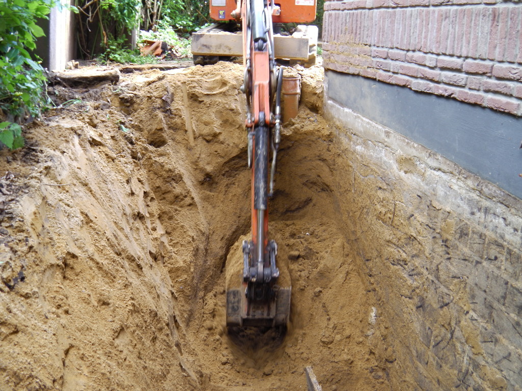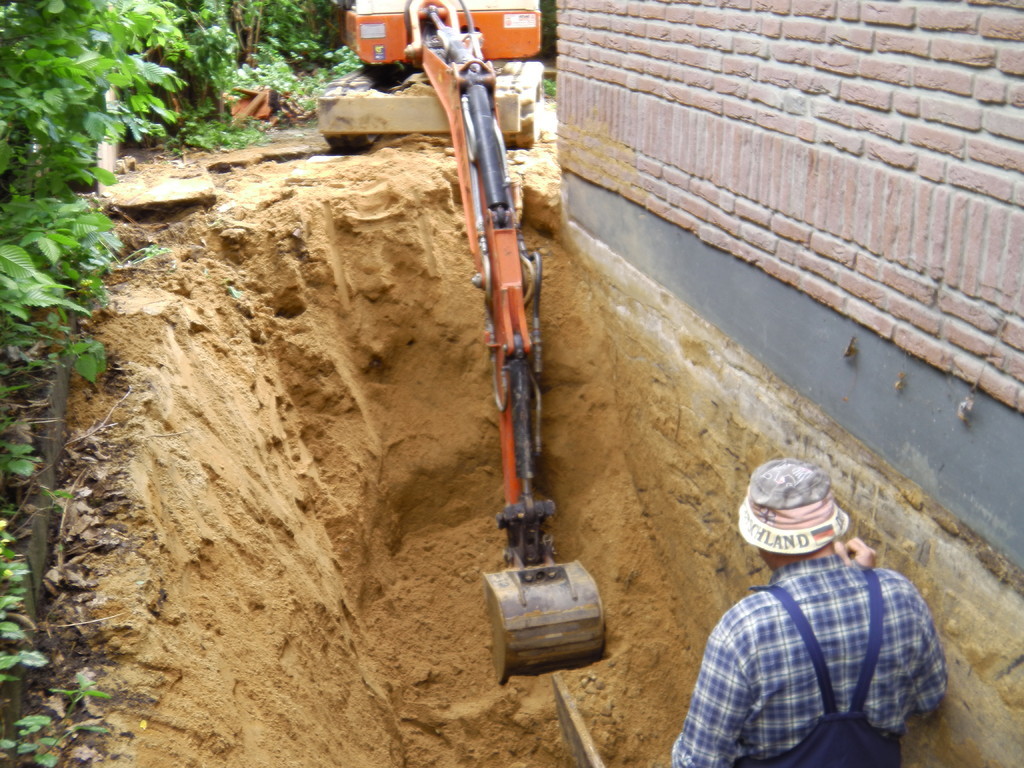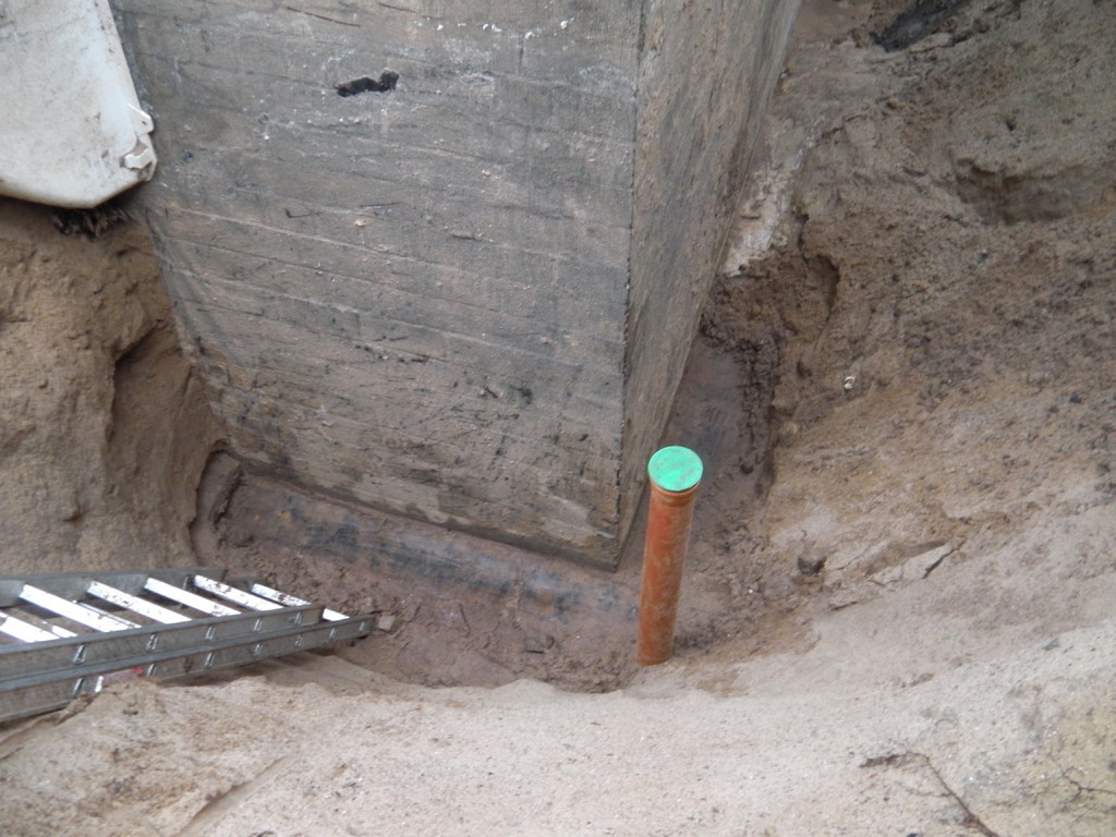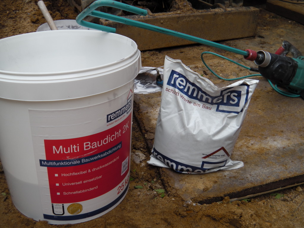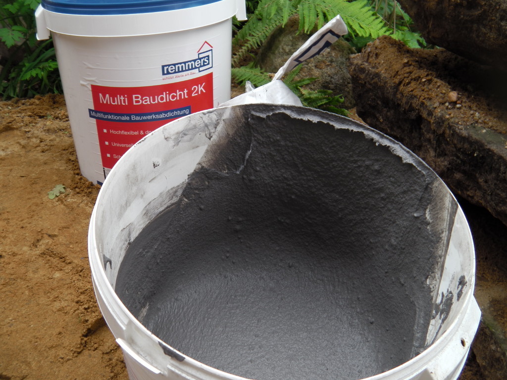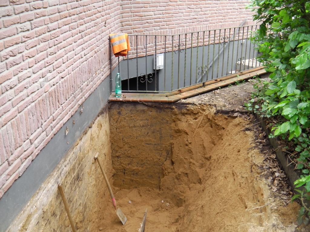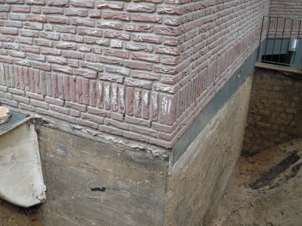 Nachträgliche Kelleraußenabdichtung gegen von außen drückendes Wasser & aufstauendes Sickerwasser auf behandeltem Mauerwerk, mit beschädigter bituminöser Abdichtung