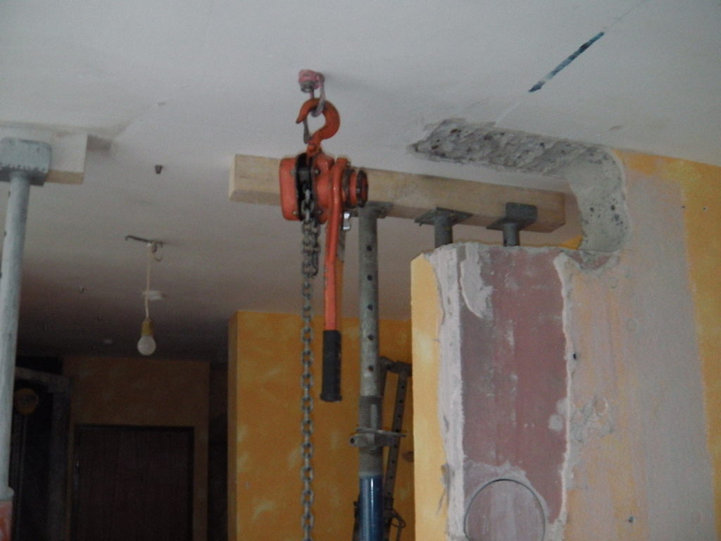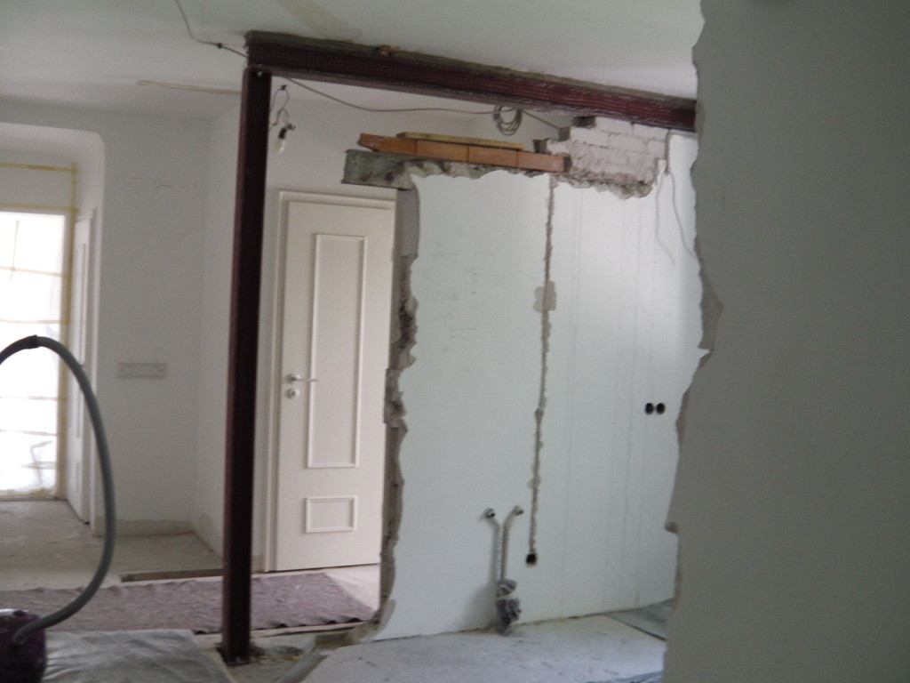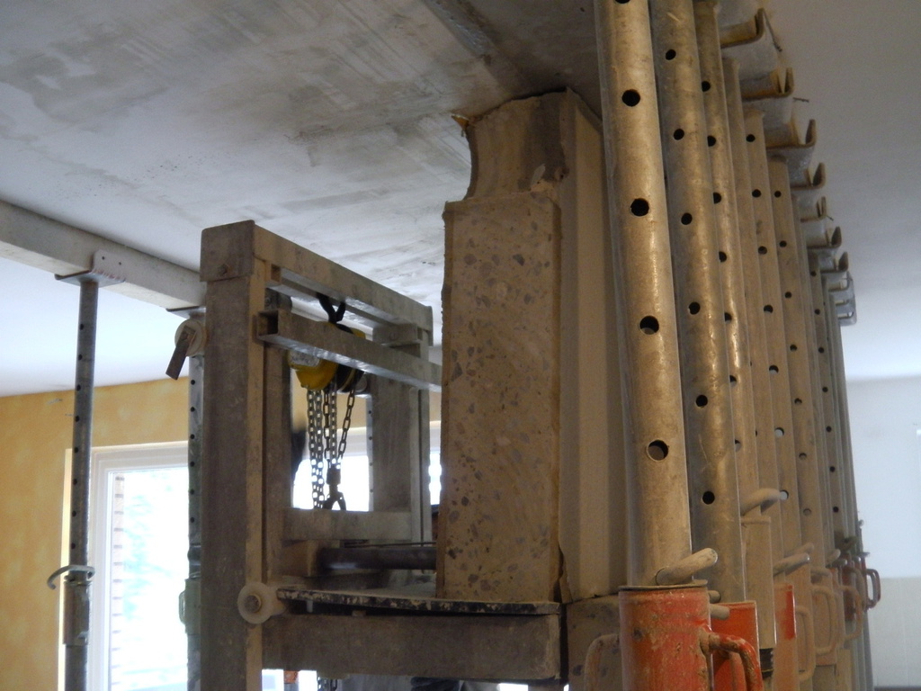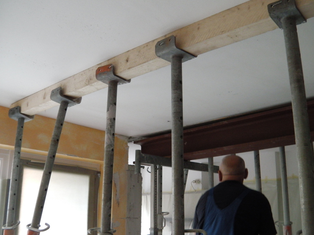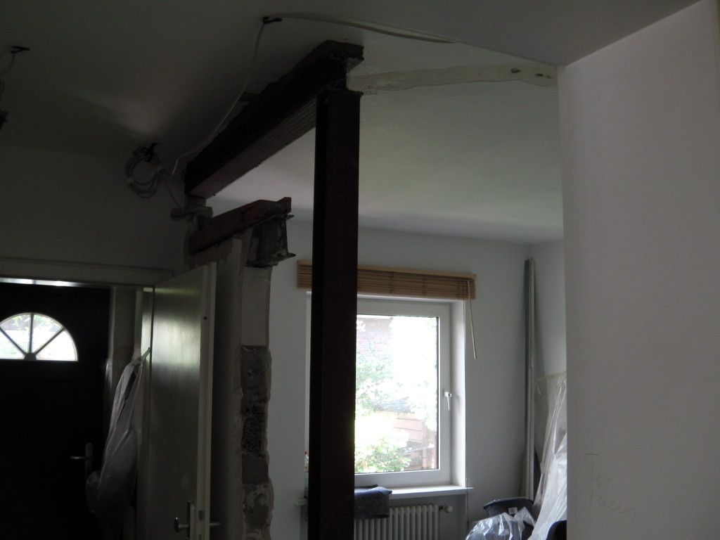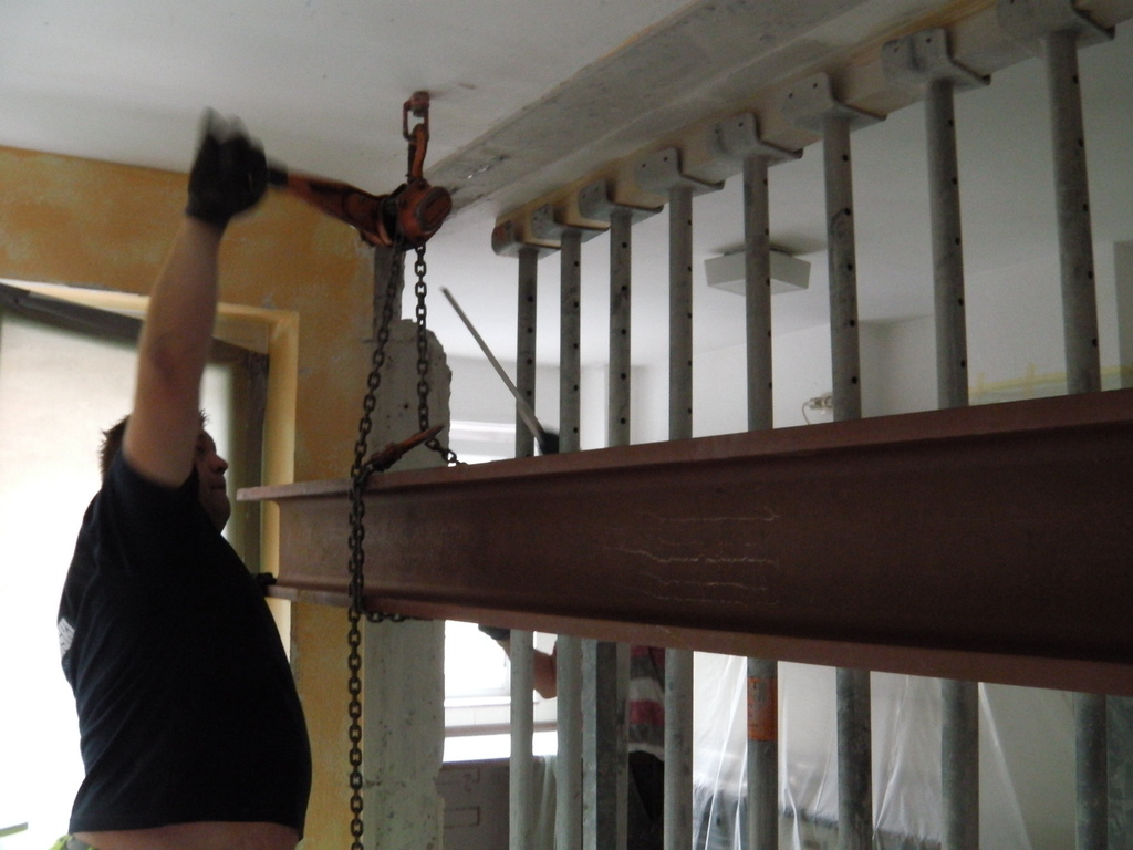 Eine Küche sollte offen gestaltet werden. Dafür, musste eine 200 mm starke Stahlbetonwand, im 2. OG. eines bewohnten, achtgeschossigen MFH. weichen. Ein Schwerlaststahlträger, mit über 1/2 Tonne Gewicht, nahm den statisch relevanten Platz der Stahlbetonwand ein.