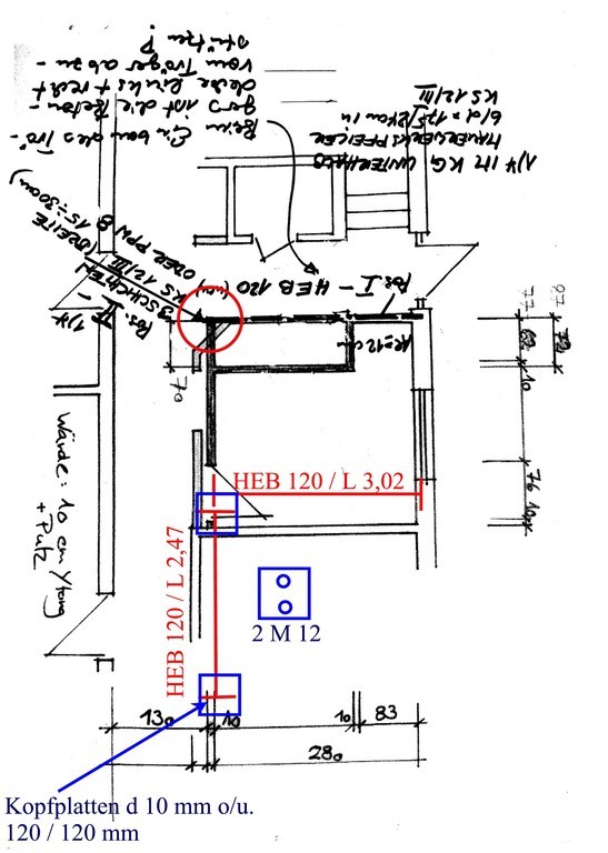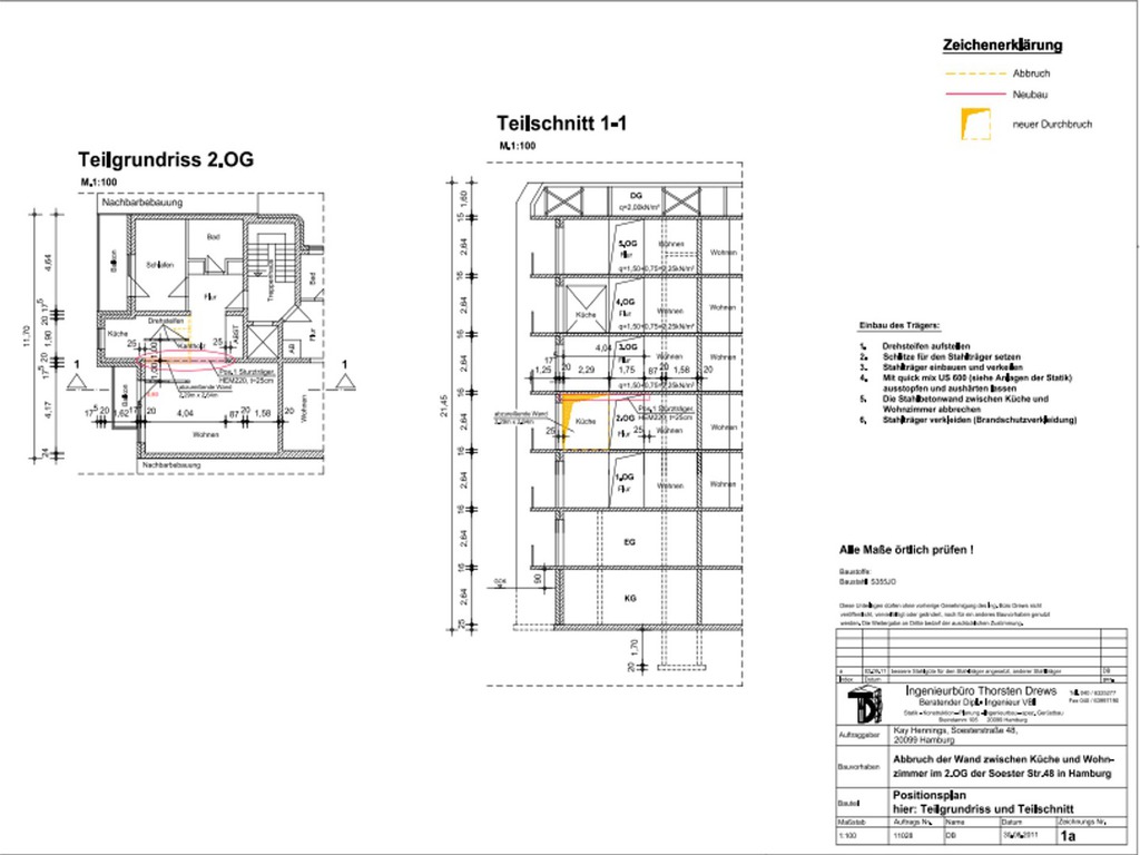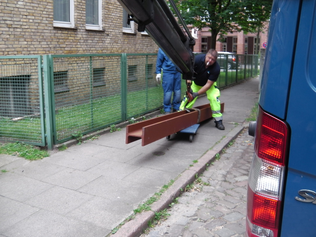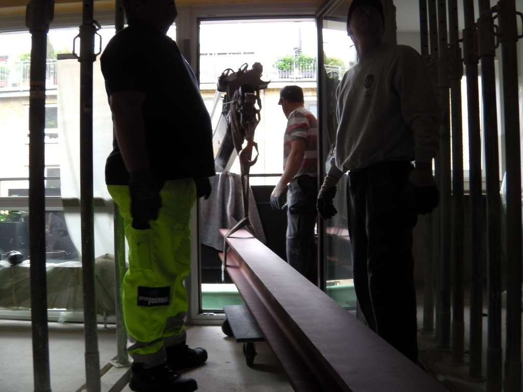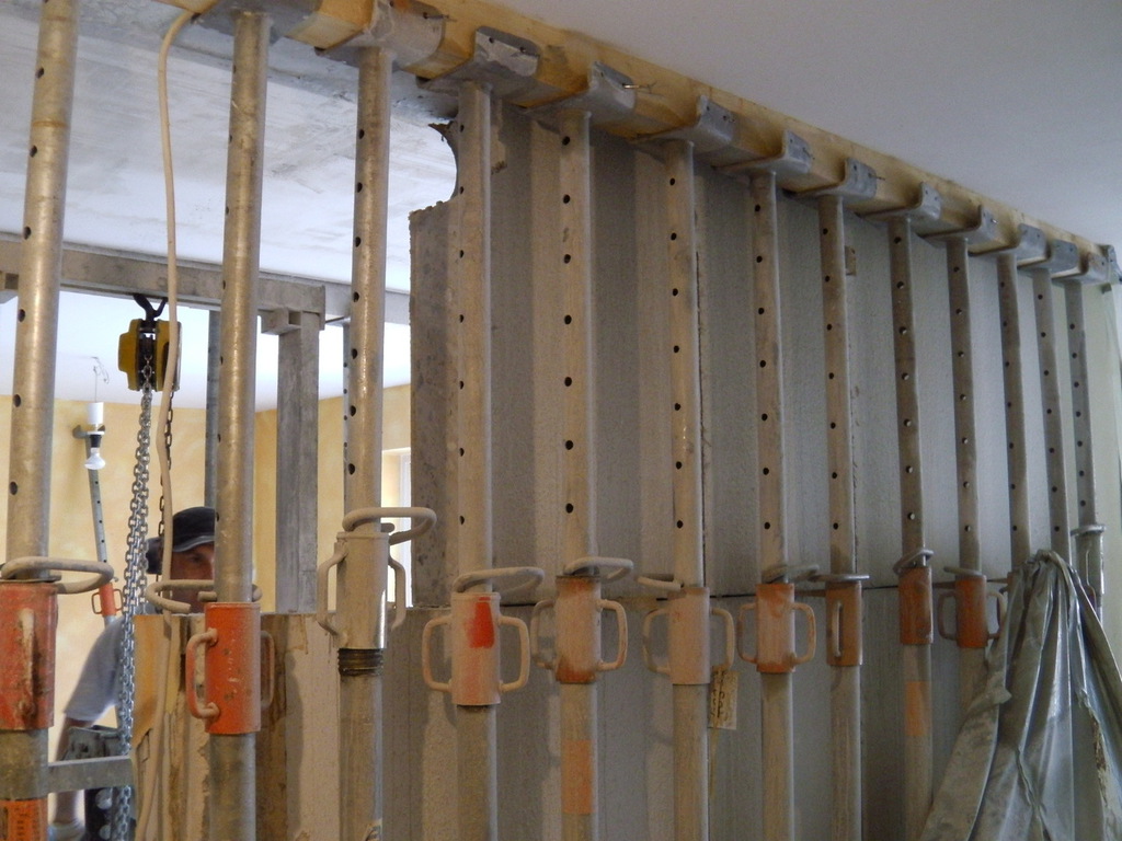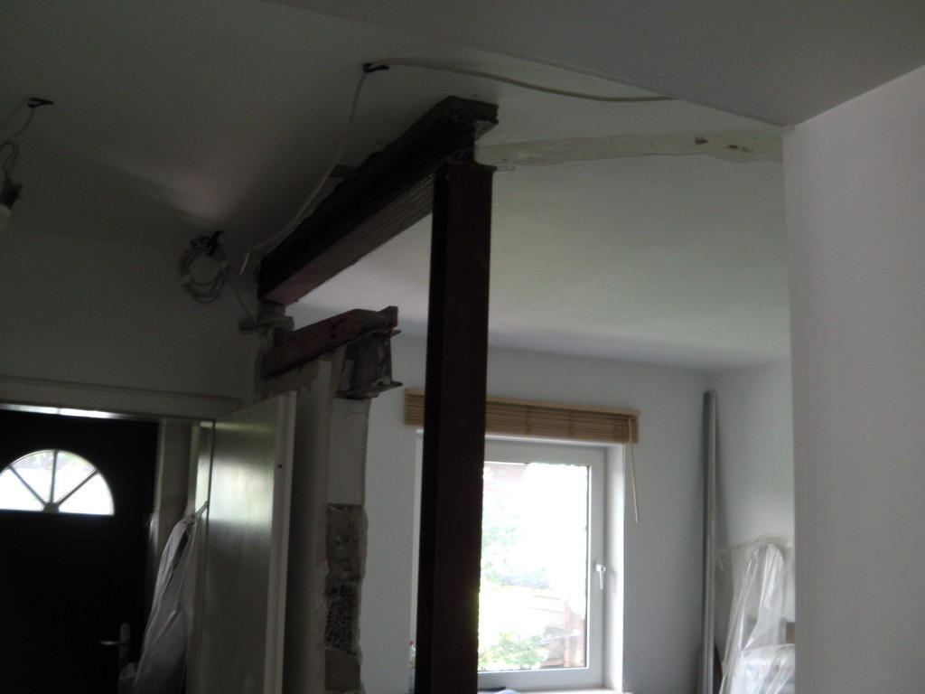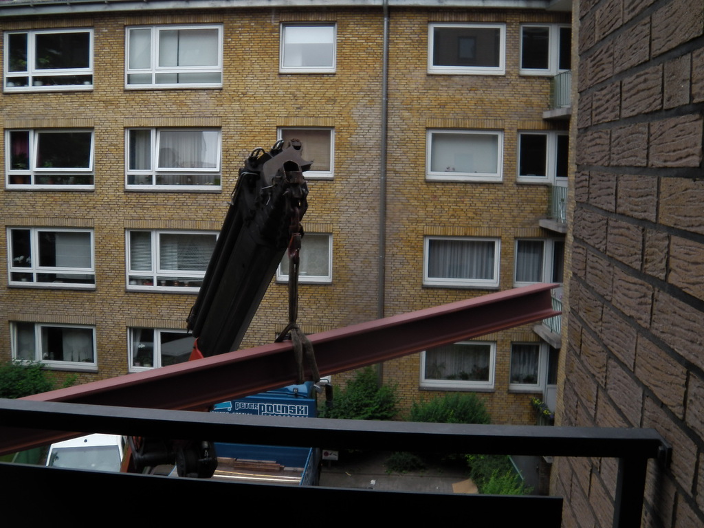 Eine Küche sollte offen gestaltet werden. Dafür, musste eine 200 mm starke Stahlbetonwand, im 2. OG. eines bewohnten, achtgeschossigen MFH. weichen. Ein Schwerlaststahlträger, mit über 1/2 Tonne Gewicht, nahm den statisch relevanten Platz der Stahlbetonwand ein.